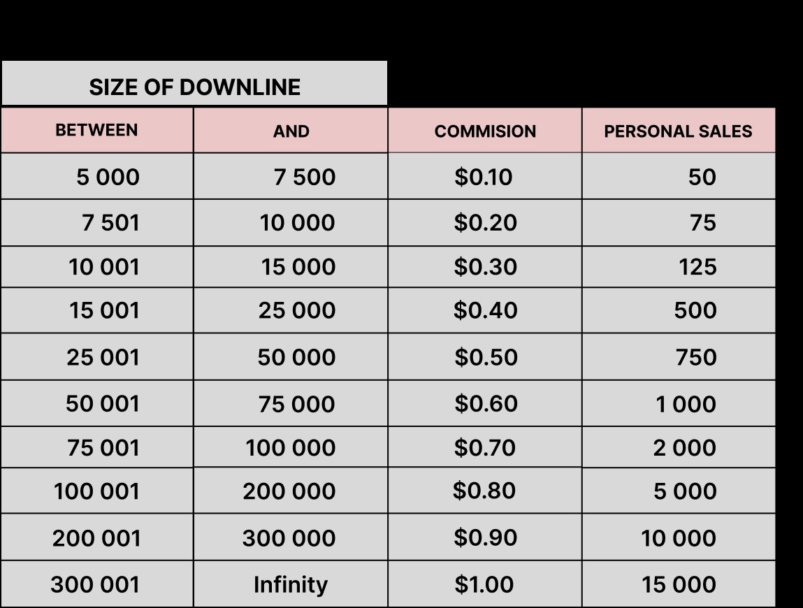 between 10 Cents and One Dollar for every associate you have in your downline.